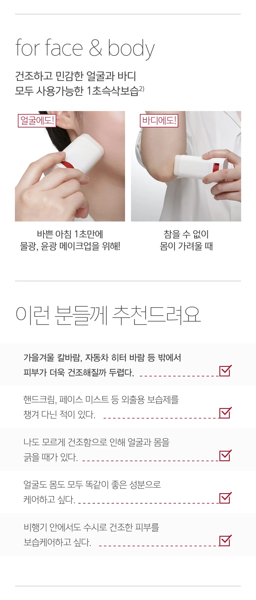 • 보습 및 진정효과로 건조함으로 인한 4가지 피부 고민 해결 (거친 피부, 당김, 갈라진 피부, 일어난 피부)